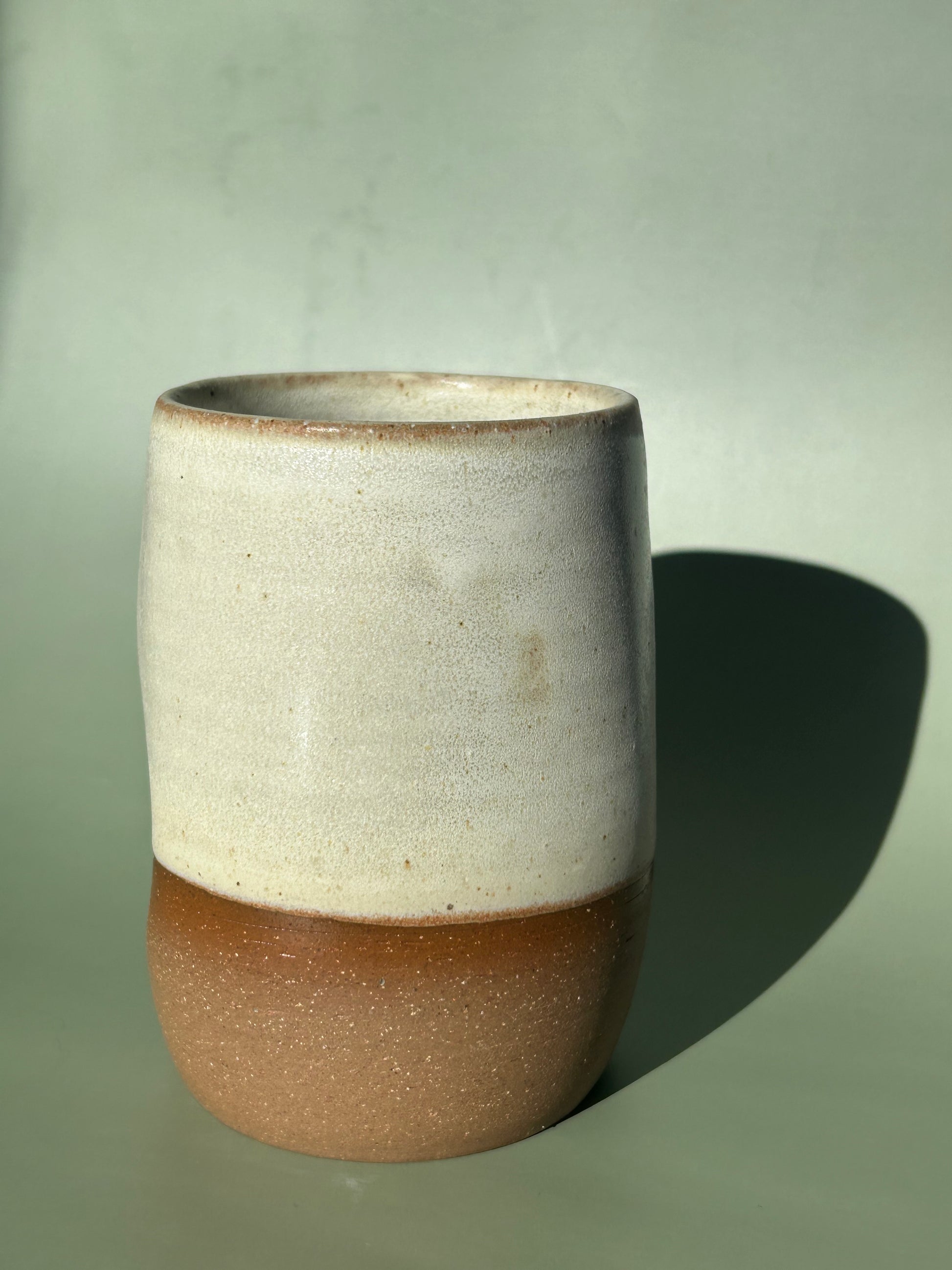 Cup with dimples for a cozy hand hold. Holds about 10-12oz