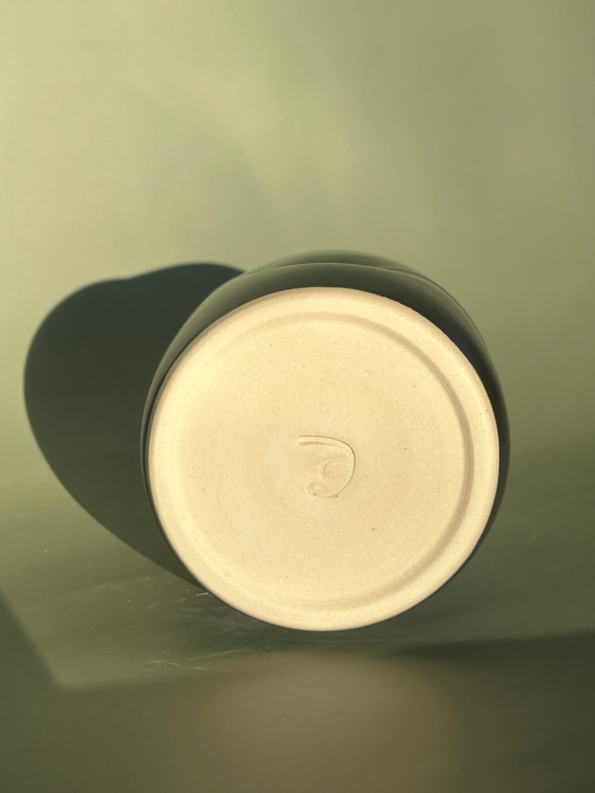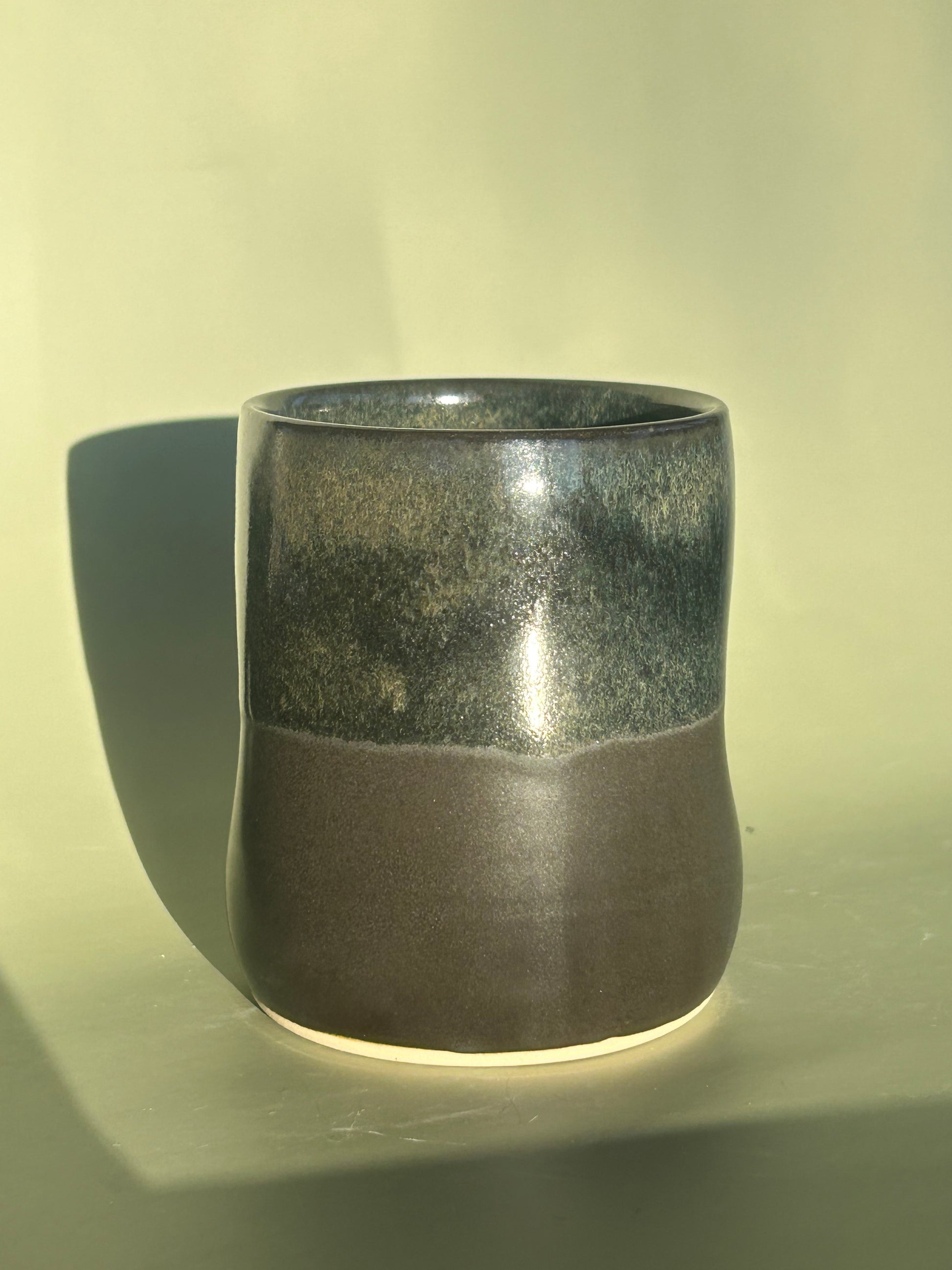 Cup with dimples for a cozy hand hold. Holds about 8oz of liquid